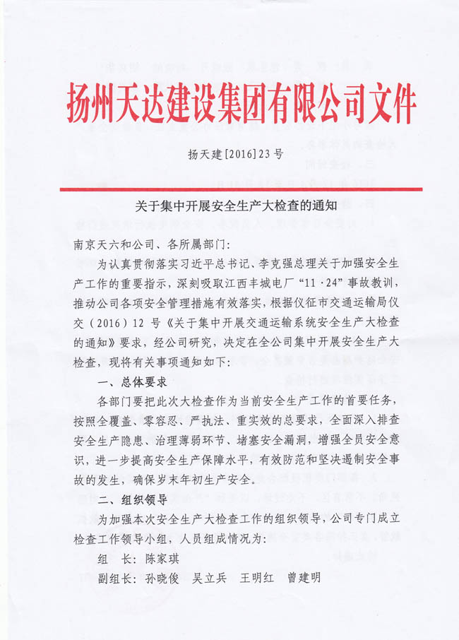 關(guān)于集中開展安全生產(chǎn)大檢查的通知