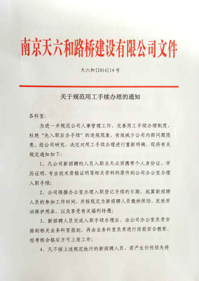 關(guān)于規(guī)范用工手續(xù)辦理的通知