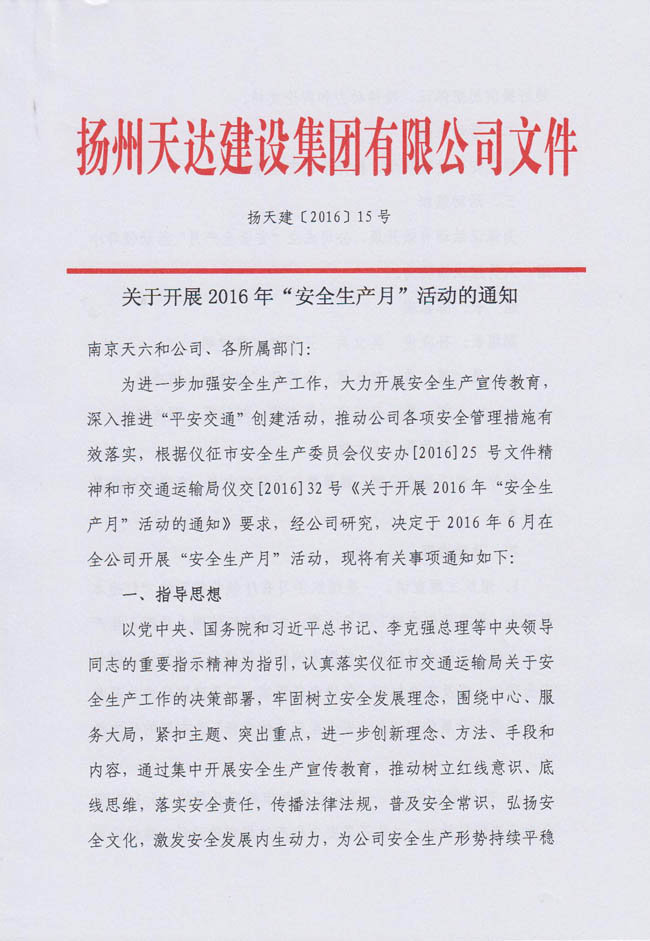 關(guān)于開展2016年“安全生產(chǎn)月”活動的通知