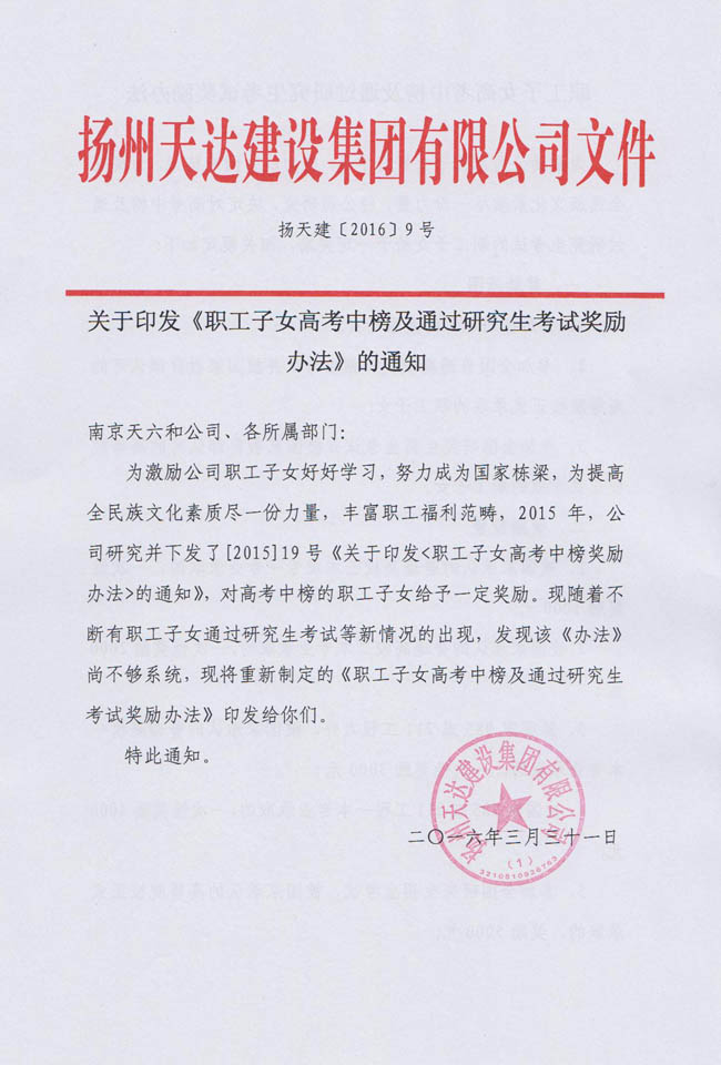關(guān)于印發(fā)《職工子女高考中榜及通過(guò)研究生考試獎(jiǎng)勵(lì)辦法》的通知
