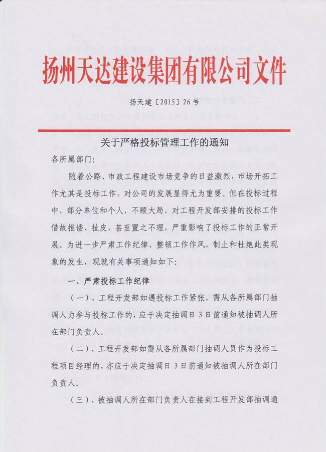 關(guān)于嚴格投標(biāo)管理工作的通知