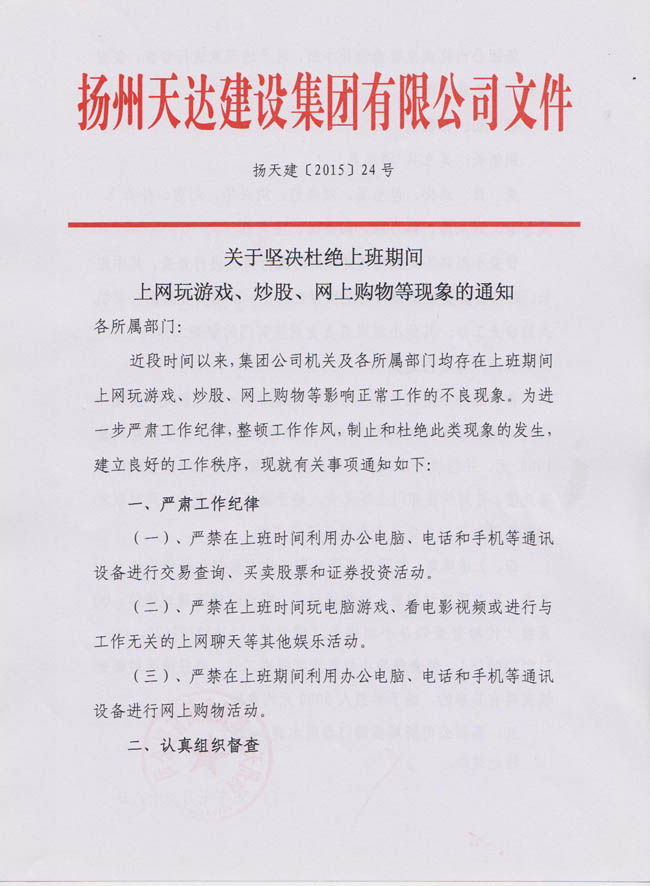 關(guān)于堅(jiān)決杜絕上班期間上網(wǎng)玩游戲、炒股、網(wǎng)上購(gòu)物等現(xiàn)象的通知