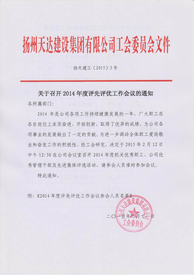 關(guān)于召開2014年度評(píng)先評(píng)優(yōu)工作的通知