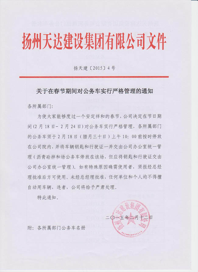 關(guān)于在春節(jié)期間對(duì)公務(wù)車實(shí)行嚴(yán)格管理的通知