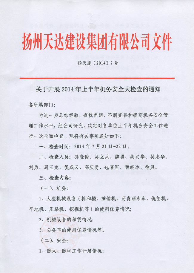 關(guān)于開展2014年上半年機務(wù)安全大檢查的通知
