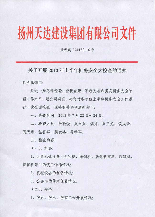 關(guān)于開展2013年上半年機(jī)務(wù)安全大檢查的通知
