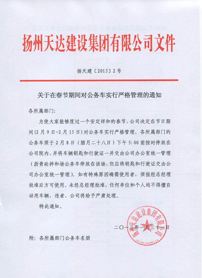 關(guān)于在春節(jié)期間對公務(wù)車實行嚴格管理的通知