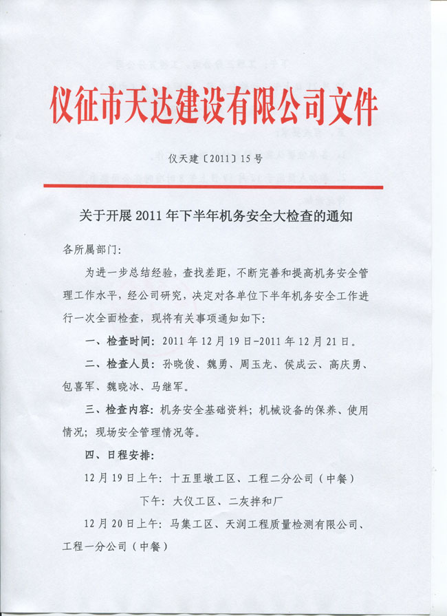 關(guān)于開展2011年下半年機(jī)務(wù)安全大檢查的通知