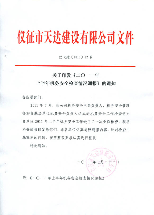 關于印發(fā)《二0一一年上半年機務安全檢查情況通報》的通知