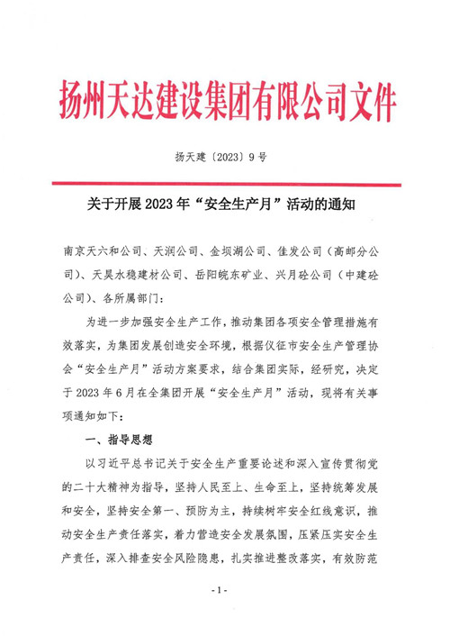關(guān)于開展2023年“安全生產(chǎn)月”活動(dòng)的通知