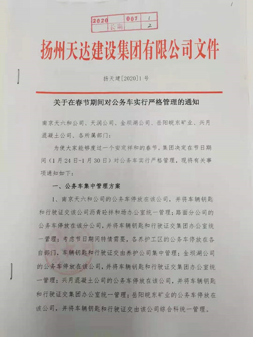 關(guān)于在2020年春節(jié)期間對(duì)公務(wù)車(chē)實(shí)行嚴(yán)格管理的通知
