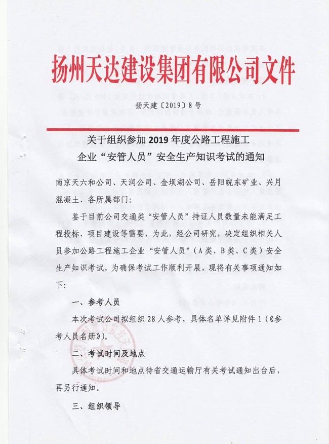 關(guān)于組織參加2019年度公路工程施工企業(yè)“安管人員”安全生產(chǎn)知識(shí)考試的通知