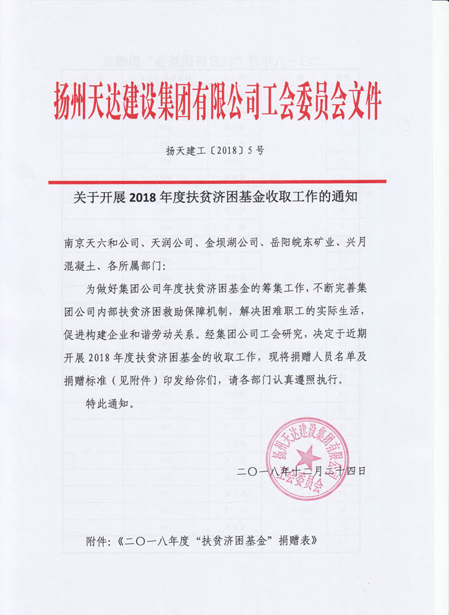 關(guān)于開展2018年度扶貧濟(jì)困基金收取工作的通知