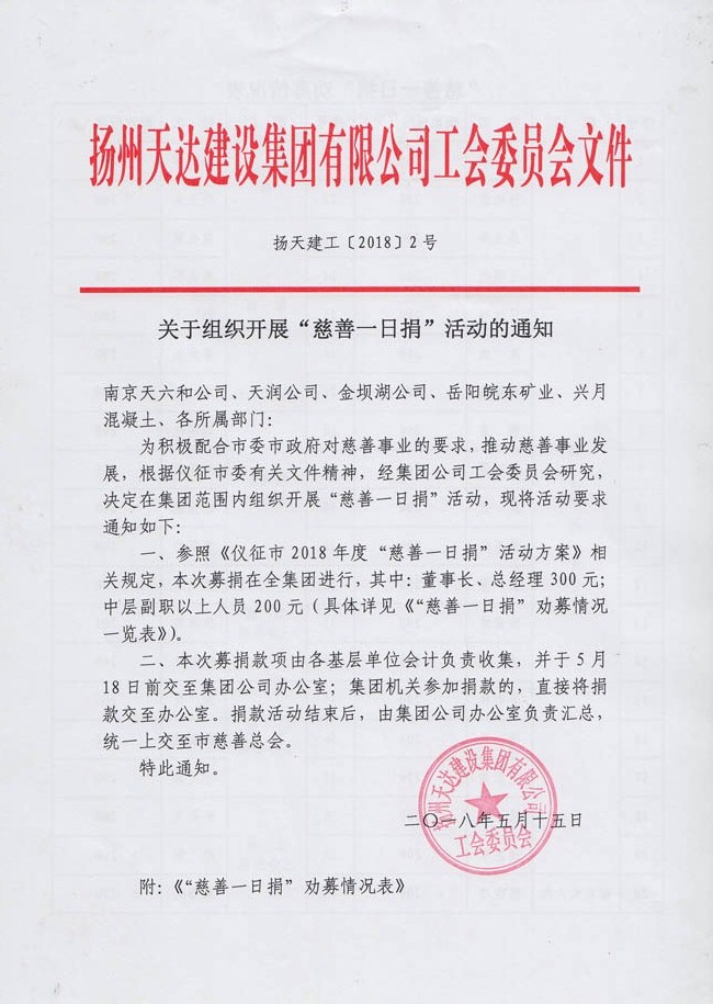關(guān)于組織開展“慈善一日捐”活動的通知