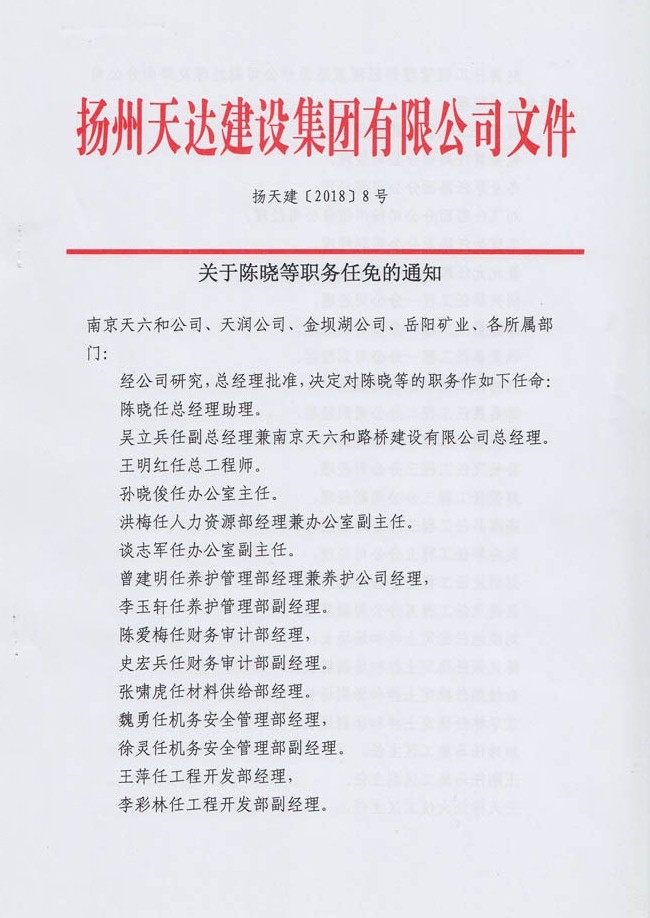 關(guān)于對原《揚州天達建設(shè)集團有限公司年度優(yōu)秀職工及優(yōu)秀管理干部評選辦法》(修訂稿)部分條款進行調(diào)整的通知