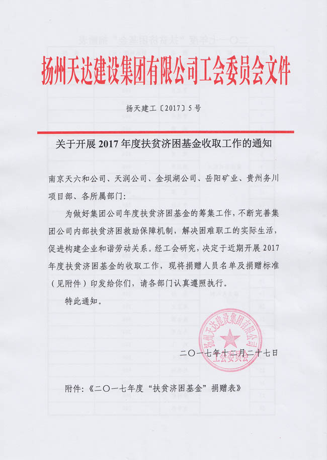 關于開展2017年度扶貧濟困基金收取工作的通知