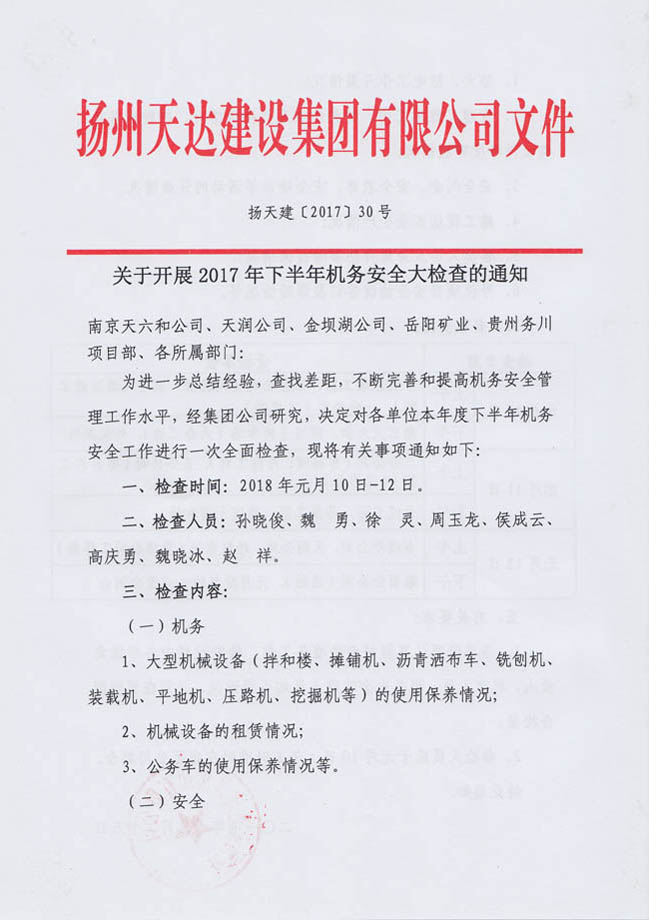 關于開展2017年下半年機務安全大檢查的通知