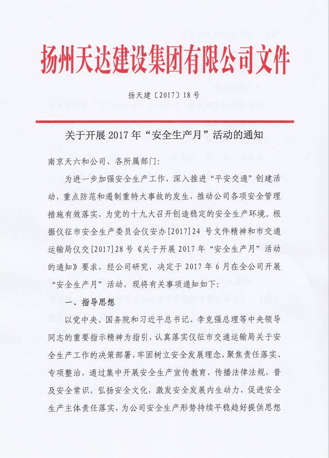 關(guān)于開展2017年“安全生產(chǎn)月”活動的通知
