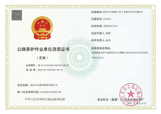 集團(tuán)成功申辦公路路基路面養(yǎng)護(hù)甲級資質(zhì)
