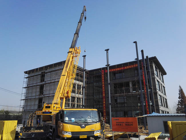 圖為新建辦公樓庭院鋼結(jié)構(gòu)搭建施工現(xiàn)場(chǎng)