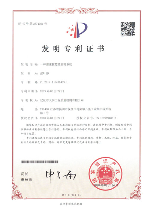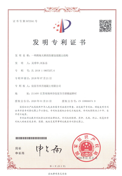 此外,儀征市天潤工程質(zhì)量檢測有限公司與儀征市興月混凝土有限公司分別結(jié)合經(jīng)營業(yè)務(wù)實(shí)際,圍繞工程質(zhì)量檢測、商品混凝土生產(chǎn)泵送方面,重點(diǎn)加強(qiáng)科研攻關(guān)力度,其中天潤檢測公司取得了“一種灌注樁超灌監(jiān)測系統(tǒng)”的發(fā)明專利證書;興月混凝土公司取得了“可調(diào)頻混凝土振搗器”、“一種跨海大橋的防腐蝕混凝土結(jié)構(gòu)”的2項(xiàng)發(fā)明專利證書。目前,該兩家公司正在準(zhǔn)備江蘇省高新技術(shù)企業(yè)入庫基礎(chǔ)資料申報(bào)工作。