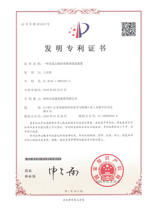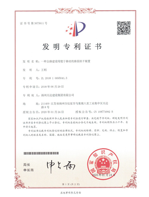 截至4月底,集團(tuán)順利取得了國家知識產(chǎn)權(quán)局授予的3項(xiàng)發(fā)明專利證書,包括“一種公路建設(shè)用便于移動的路面烘干裝置”、“一種公路施工用灑水降塵裝置”、“一種高速公路瀝青路面修復(fù)裝置”,上述發(fā)明專利的取得不僅體現(xiàn)了集團(tuán)在科技研發(fā)方面所做的努力,而且更為集團(tuán)參與市場競爭提供了有力支撐。下一步,集團(tuán)將著手在實(shí)用新型技術(shù)研發(fā)領(lǐng)域取得突破,做好研發(fā)人員、研發(fā)設(shè)備、研發(fā)資金歸集,以及發(fā)明成果轉(zhuǎn)化等工作,為集團(tuán)成功進(jìn)入江蘇省高新技術(shù)企業(yè)庫做準(zhǔn)備,進(jìn)而為后續(xù)申報(bào)2020年度國家高新技術(shù)企業(yè)創(chuàng)造必要條件。