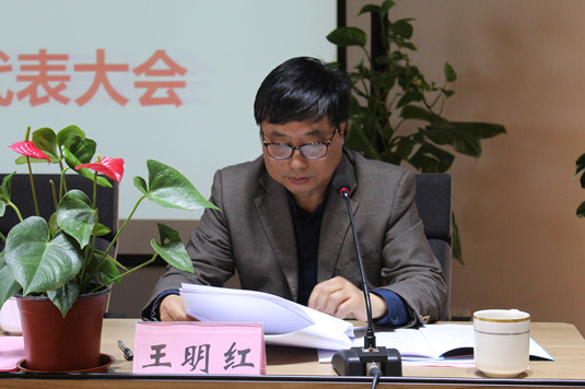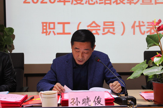 圖為集團(tuán)黨支部書記兼辦公室主任孫曉俊作大會(huì)籌備工作報(bào)告