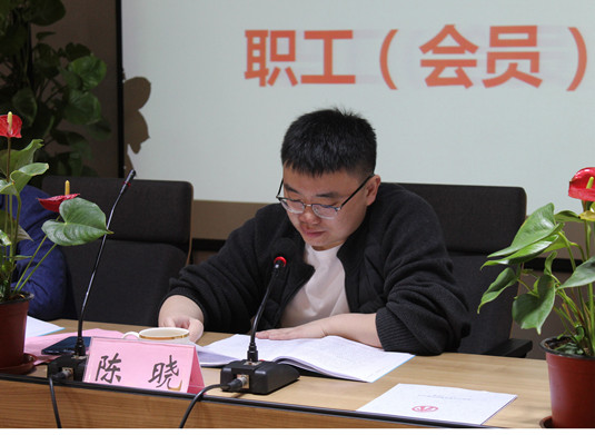 圖為集團(tuán)副總經(jīng)理兼工會(huì)主席吳立兵作工會(huì)工作報(bào)告