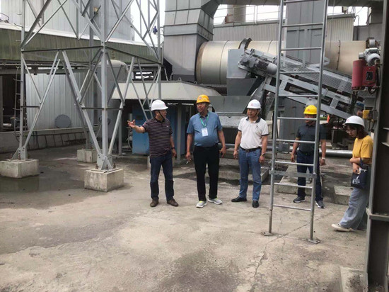 圖為檢查瀝青砼拌和場生產(chǎn)現(xiàn)場