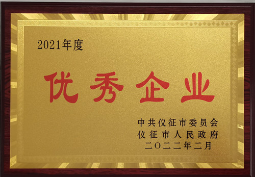 圖為榮獲的儀征市優(yōu)秀企業(yè)獎牌