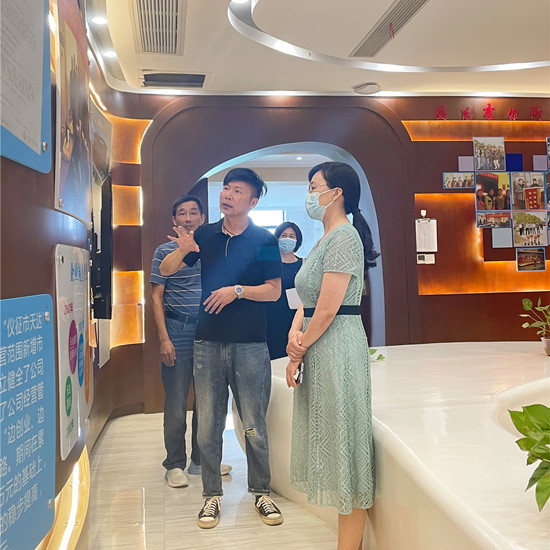 2022年7月18日,儀征市總工會(huì)黨組書記、主席王紅英率隊(duì)來集團(tuán)調(diào)研指導(dǎo)黨建帶工建“三創(chuàng)爭兩提升”活動(dòng)省級(jí)示范單位創(chuàng)建工作。集團(tuán)黨支部書記兼辦公室主任孫曉俊、工會(huì)副主席蔣遠(yuǎn)勇陪同調(diào)研。調(diào)研組一行實(shí)地參觀了集團(tuán)職工之家、黨群之家、工會(huì)園地、會(huì)議室、員工餐廳等相關(guān)區(qū)域,重點(diǎn)了解了各陣地的設(shè)施建設(shè)情況和服務(wù)員工成果,集團(tuán)黨支部孫曉俊書記、工會(huì)蔣遠(yuǎn)勇副主席分別就黨建與工建工作與調(diào)研組進(jìn)行了深入交流。