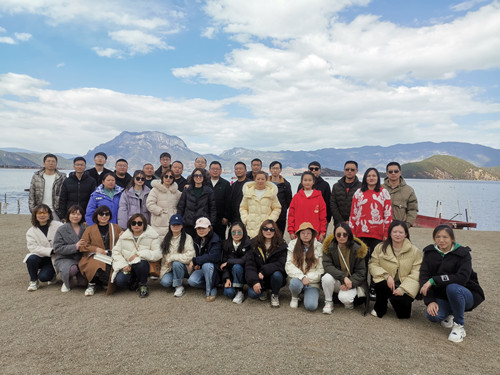 圖為出游職工在云南瀘沽湖合影