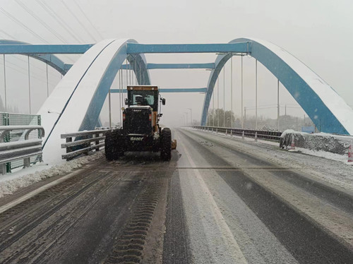 圖為356省道路面撒布融雪劑現(xiàn)場