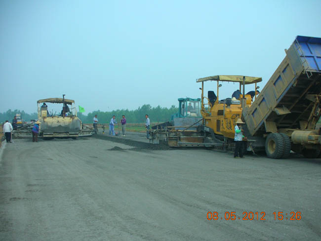 圖為攤鋪施工現(xiàn)場