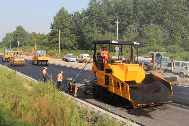 圖為南京天六和路橋公司新添置的瀝青砼攤鋪機(jī)在施工現(xiàn)場